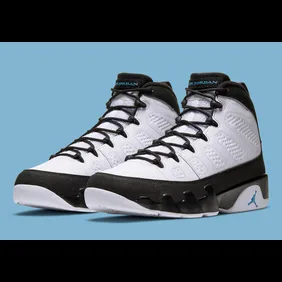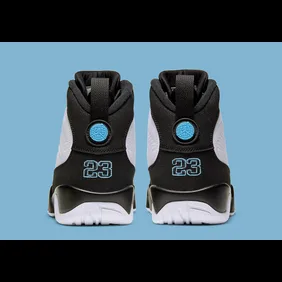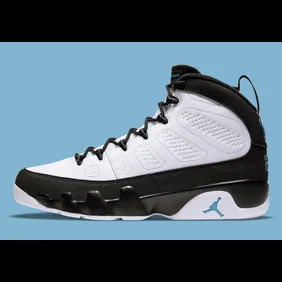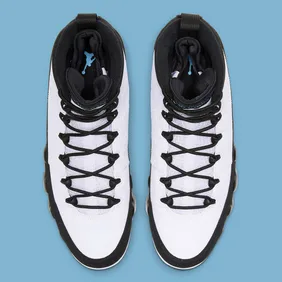The official images for the shoe were revealed today, and as you can see, the sneaker features a white leather upper and some black overlays that extend from the mudguard all the way to the back heel. From there, we get that infamous "University Blue" hue on the Jumpman branding that appears throughout the entire silhouette. Overall, it leads to a clean colorway that will certainly be a hit amongst fans looking to get into the Air Jordan 9.