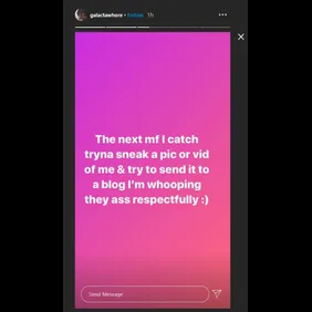 "The next mf I catch tryna sneak a pic or vid of me & try to send it to a blog I'm whopping they ass respectfully :)," the singer wrote on her Instagram Story. "Lmao this fame sh*t ain't for me bruh." Check out her posts below.