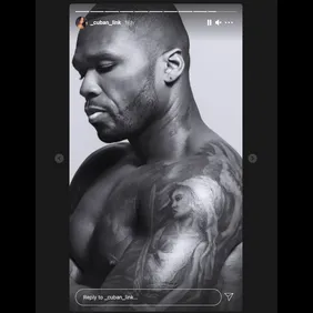 Sharing some cute moments on Instagram Stories, Cuban Link posted a throwback shot of the two lovers together on the beach before sharing another shot of 50 Cent alone, showing off the ink on his arm. The television producer seemingly has a new piece on his left bicep, which looks like it could be a portrait of his girlfriend Haines. The woman on his tattoo bears a strong resemblance to her, wearing a dress and headwrap.