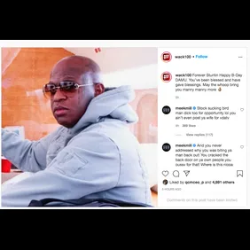 We wouldn't be surprised if there were more responses by now, but it looks like Meek has taken to the comment sections on multiple photos that Wack 100 recently posted to clown him for all sorts of things. On one post that features Birdman in it, Meek wrote, "Stock sucking bird man dick too for opportunity lol you ain't even post ya wife for vdatv [sic]" and also adding, "And you never addressed why you was biting ya man back out! You cracked the back door on ya own people you pussy for that! Where is this n***a from lol fake ass tough guy lol."