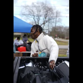 The inaugural Travis Scott x Cactus Jack holiday drive was held at the Sunnyside Park in Houston and serviced three local elementary schools including their staff. The event honored all social distancing rules and was contactless and drive-up only. Even Scott's daughter Stormi Webster was on the scene helping her dad make sure nearly 2,000 families had all they needed to for the holiday season.