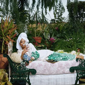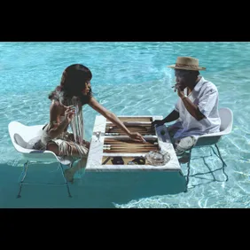 The recent announcement of legalization in New York state coincided with Monogram's latest ad campaign that takes inspiration from the late photographer Slim Aarons. Hov and Monogram enlisted the ever-iconic Hype Williams for this spread, shot at the Frank Sinatra House in Palm Springs, FL. Curren$y and Aleali May were spotted playing Backgammon in a pool together as a reimagination of Aarons' "Keep Your Cool" photograph. Chika and Slick Woods also make appearances in the spreads, taking inspiration from other works from Aarons' such as “Desert House Party,” “Poolside Glamour” and “Leisure and Fashion."