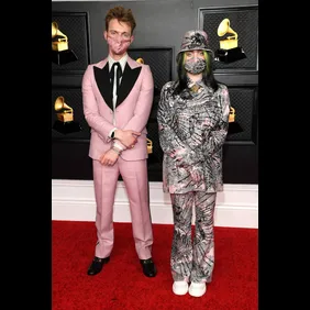 Billie Eilish and brother Finneas color-coded in baby pink. Coincidentally, Billie's look also seems to match Roddy Ricch.