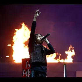 Roddy Ricch changed for his performance of "The Box," wearing a full leather outfit and some chunky sneakers.