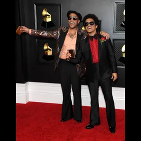 Anderson .Paak and Bruno Mars gave us some retro vibes in their suits, which featured flared pants.