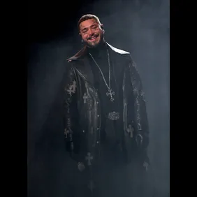 Post Malone sported some religious emblems for his performance of "Hollywood's Bleeding."