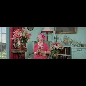 Does anyone know who this old white lady with a chihuahua is? We're guessing it may be the Queen of England.