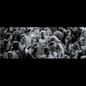 The Cleveland Cavaliers player Lebron is seen giving a pep talk in this black and white clip.