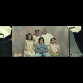 Drake is seen as both a young chubby child as well as himself in this strange family portrait.
