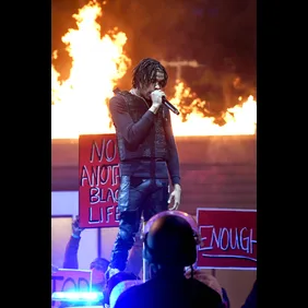 Lil Baby's performance at the Grammys last night was arguably the most talked about. The jarring visuals depicting police brutality against African-Americans opened up his set before delving into a grandiose performance of "The Bigger Picture." The rapper was assisted by Killer Mike who rapped a portion of Run The Jewels' "walking in the snow." Activist Tamika Mallory also appeared during Baby's performance with a powerful message calling on Joe Biden to lead the change.