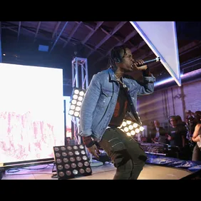 Kanye walked out and performed "All Day", while Travi$, who helped produce the song, played hype man on the turn-up anthem of 2015. L.A. resident Chris Brown also made an appearance toward the end of the show. Though we can't hear him singing, there's a clip of him mobbing on stage with 'Ye, La Flame, and Thugga during the performance of "Skyfall". That's a lot of star power on one stage.