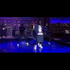 Not only does Le1f’s performance in his home-town of Manhattan entertain at a high level with dancers and live instrumentation, but it is also a triumph in television in hip-hop. With Le1f’s late night debut in March of 2014, he became the first openly gay hip-hop recording artist to perform on television. Performing "Wut," the rapper/producer joins in on choreography and never misses a beat or loses his flow - all while wearing a denim skirt and Nike moonboots that Letterman himself envies.