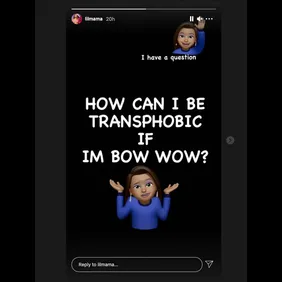 "I have a question. How can I be transphobic if I'm Bow Wow?" she joked on Instagram Stories.