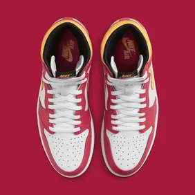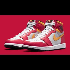 Among these offerings is the Air Jordan 1 High OG "Light Fusion Red" which is pictured down below. These are the very first official images of the shoe, and as you can see, it's a vibrant offering that will be perfect for the summer. The base of the sneaker is made from white leather, all while the overlays are a pinkish shade of red. There is even some yellow on the Nike swoosh and cuff, which is there for good measure.