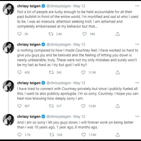 The fallout from those resurfaced tweets is reportedly disrupting Chrissy Teigen's business partnerships. Recently, Courtney Stodden, the once-16-year-old who married 50-year-old The Green Mile actor Doug Hutchison back in 2011, revealed that all those years ago when Stodden was a minor, the model received messages from Teigen urging the teen to "take a dirt nap." Other resurfaced tweets of Teigen's show that Stodden wasn't the only person that the model mogul sent scathing messages to, and Teigen returned with an apology.