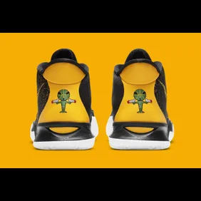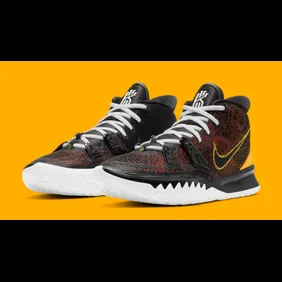 The latest Nike Kyrie 7 just so happens to be a "Rayguns" colorway which is a reference many Nike fans will understand. The shoe is made famous by the alien raygun symbol on the back heel and this Nike Kyrie 7 makes full use of the aesthetic. The upper is mostly comprised of black and red material all while the Nike swoosh outline and back heel are orange. Fans of the "Raygun" aesthetic will certainly like these, and even if you've never heard of it, the colorway itself is pretty flashy.