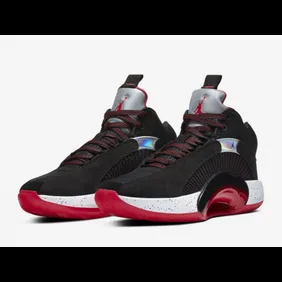 The latest Jumpman model is the Air Jordan 35 and right on cue, the sneaker is getting a black and red model in just a few days from now. Official images of the sneaker hit the internet today and as you can see below, the shoe certainly lives up to its name. It is covered in some black suede material, all while the highlights are red. We even get a silver 3M tongue, for good measure.