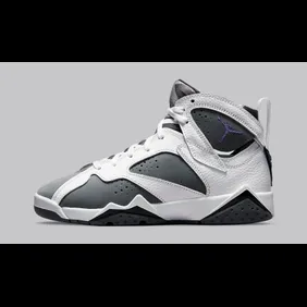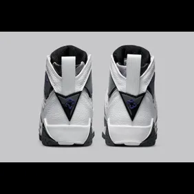 In new official images that can be found below, the sneaker has a white leather top, all while the toe box and side panels are constructed with grey nubuck. Hints of purple are found all the way throughout, particularly on the Jumpman logos. While the Jordan 7 was a shoe that typically possessed a plethora of colors, this particular color scheme takes a more neutral approach, and overall, it makes for a great offering.