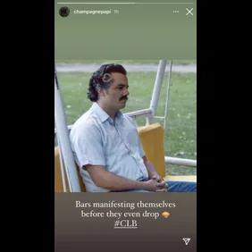 "Bars manifesting themselves before they even drop," wrote Drake on Instagram Stories. The man in the picture looks on with a heart shaved into his hair, much like Drake has been sporting from time-to-time. The post was deleted shortly after being posted.