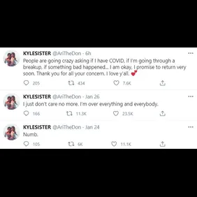 "Numb," she added. "I just don’t care no more. I’m over everything and everybody." After seeing the response and reading that people were concerned for her, Ari offered an update. "People are going crazy asking if I have COVID, if I’m going through a breakup, if something bad happened... I am okay, I promise to return very soon. Thank you for all your concern. I love y’all."