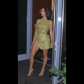 Kim Kardashian wore a vintage green Dior dress while Maluma rocked a suit from his collection with Balmain.
