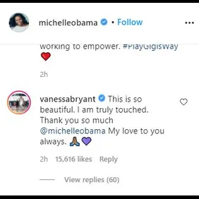 In the comments, Vanessa replied, "This is so beautiful. I am truly touched. Thank you so much @michelleobama My love to you always. [praying hands emoji][purple heart emoji]."