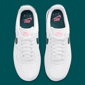 The latest Nike Air Force 1 Low to be shown off is in this gorgeous "Dark Teal Green" model which features some hues that will work very well in the Spring and the Fall. As you can see from the official images below, the shoe has a white leather upper all while the Nike swoosh is dark teal. From there, the Nike Air branding on the tongue and the heal is pink, which makes for some nice contrasting colors.