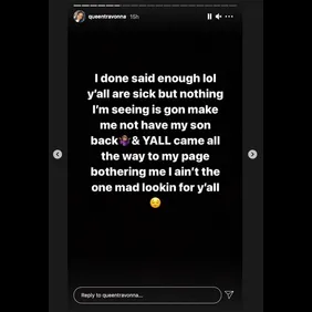She continued to share long messages on her story before posting a side-by-side of her son and Lil Durk. "LIE FOR WHAT???" she prodded. "Y’all are NOBODY TO PLEASE & HE IS NOBODY TO PROTECT UP AGAINST MY CHILDS INNOCENTS SO AGAIN HAVE A GOOD DAY WE GOT DNA."