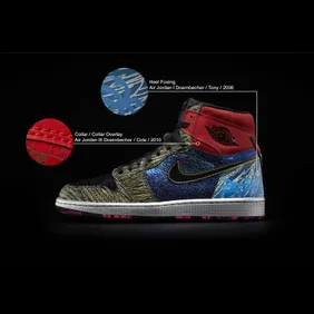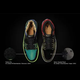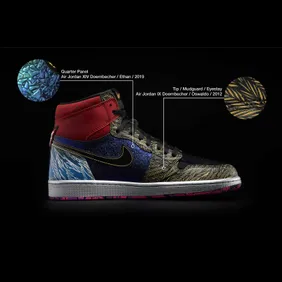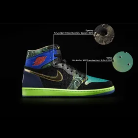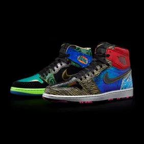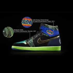 The latest to be revealed is this Air Jordan 1 found below. In fact, this is being pegged as a "What The" model as it contains various elements from other popular Doernbecher Jordans. The Doernbecher shoes are known for being full of imagination, and with all of the various colorways coming together here, this "What The" is certainly going to be a huge hit among collectors.