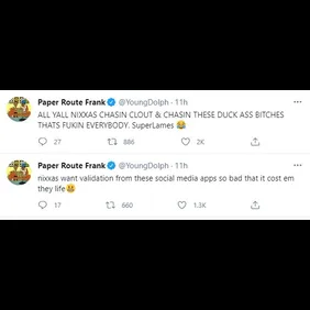 "Nixxas want validation from these social media apps so bad that it cost em they life [grimacing face emoji]," Dolph added. "ALL YALL NIXXAS CHASIN CLOUT & CHASIN THESE DUCK ASS B*TCHES THATS FUKIN EVERYBODY. SuperLames [crying tears laughing emoji]." Who do you think he's talking about? Check out his posts below.