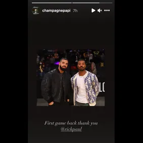"First game back thank you @richpaul," Drake writes in the aforementioned Instagram story post.