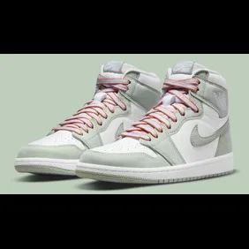 One of the latest Air Jordan 1 models to be shown off is this "Seafoam" offering which is being marketed for women. As you can see in the official images below, the shoe has a mostly white base all while the upper is covered in light green. The laces are white with orange outlines, which ultimately makes for a unique aesthetic that is rare to find on an AJ1.