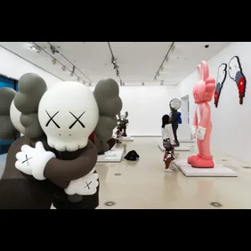 According to a description from the Brooklyn Museum, KAWS’ work “both critiques and participates in consumer culture,” exploring the universal emotions “love, friendship, loneliness, and alienation.”