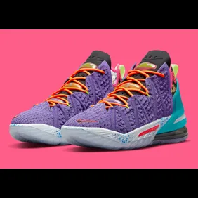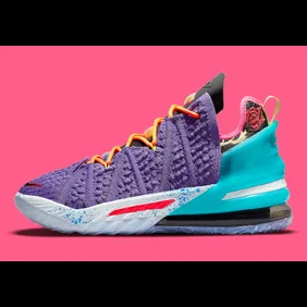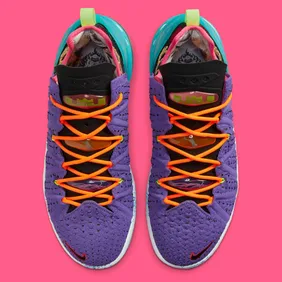 Now, the Nike LeBron 18 "Best 10-18" has been revealed which, as the name suggests, speaks on his last 9 shoes. In the images below, you can see that there is a purple upper followed by a turquoise back heel. On the heel cup, we even see some floral arrangements which seem to be a nod to the Nike LeBron 15 Kith collaboration. Overall, this is a very colorful model that has a lot of history packed into it.