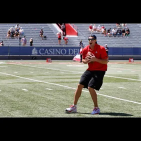 Gronk made the play at his alma mater, Arizona, with his former New England Patriots teammate Tedy Bruschi in attendance. After the catch, Bruschi and the Wildcats' team sprinted over to join Gronk in celebration.