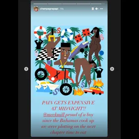 "PAIN GETS EXPENSIVE AT MIDNIGHT," wrote Drake on Instagram Stories on Thursday evening, sharing Meek's album cover. "@meekmill proud of u boy since the Bahamas cook up we were plotting on the next chapter time to eat."