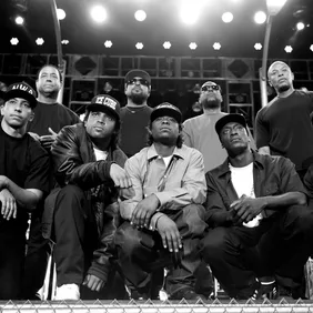 For the old school heads: Grand Puba, Lord Jamar, & Sadat X of Brand Nubian pose with Scarface and Flavor Flav.