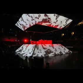 'Ye's involvement in the memorial service was deeper than the tribute t-shirt and Sunday Service Choir's performance. As Swizz suggested on Saturday, Kanye West and the Yeezy tea designed the stage. Kanye enlisted Akeem Smith to help with the design which included an upside-down pyramid-like set. Images of X were displayed on screens surrounding both above and below the stage during the performances from Sunday Service.