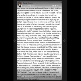 She also took aim at the media who she said has "been controlling in narrative w his case for 4 years" and because the rapper didn't have a publicist or a team working by his side, Kayla believes public opinion has been swayed. "Taymor is innocent. Texas is racist!" Read through her post in its entirety below.