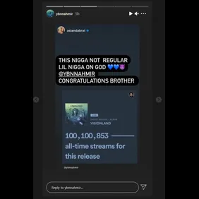 Along with his message, Nahmir shared a series of reposts of people who supported his project, including Asian Doll. "This n*gga not regular lil n*gga on god," she penned. "@YBNNahmir congratulations brother." Earlier today (March 31), Nahmir also posted a screenshot that showed Visionland had acquired over 100 million streams. Check it all out below.