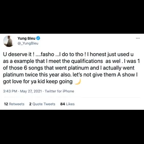 "I’m one of the 6 songs that went platinum this year. Don’t tell me I shouldn’t make shitttt."