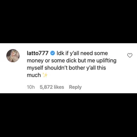 Latto took the opportunity to fight back in the comments, writing, "Idk if y’all need some money or some dick but me uplifting myself shouldn’t bother y’all this much."