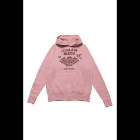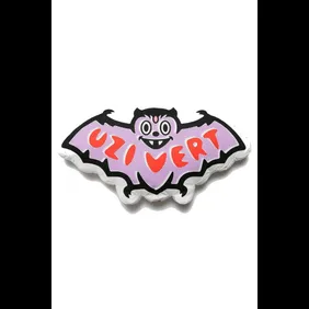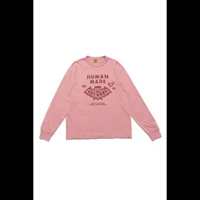In the images below, you can see that there are three clothing items in particular here. These items are a t-shirt, a long-sleeve, and a hoodie. These pieces have a bat in the middle that simply says "Uzi Vert" across the chest and wings. There is also HUMAN MADE branding throughout, and the colors have been set to pink and white.