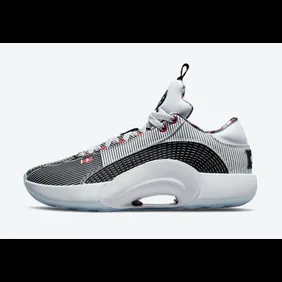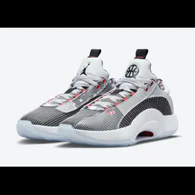 Recently, new photos of a "Quai 54" Air Jordan 35 Low made their way to the internet. As you can see in the images below, the shoe has a white base to it black lines and grids of various sizes are placed throughout. There is a hint of red throughout the shoe as well, which helps deliver some extra color. We can also see the Quai 54 logo on the left tongue, which helps bring the concept together.