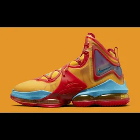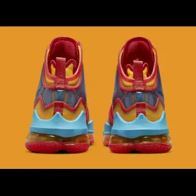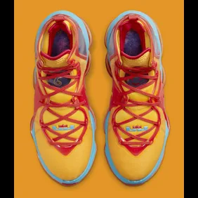 This sneaker is very loud and colorful as you can see that the upper is covered in yellow material, all while red is placed as highlights throughout. There is some blue plastic closer to the midsole, and when it comes to the Nike Air unit in the bottom, we have a translucent yellow tint that fits with the overall theme of the sneaker.
