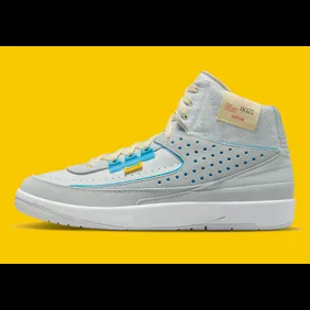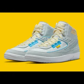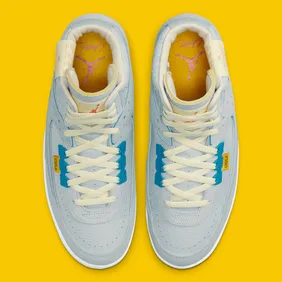 In the images below, you can see the new "Grey Fog" model which features Union LA branding throughout. The sneaker is covered in a greyish-blue tint that really makes the sneaker stand out compared to other Jordan 2 offerings. The cream-colored laces provide some nice contrast and the yellow highlights also make this shoe more unique. Overall, it is a very good look and it is one that Jumpman fans will appreciate.
