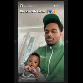 "Back with twin [fingers crossed emoji]," the basketball player wrote on his Instagram Story. He also shared a photo of himself with his little one immediately after the boy was born, and while Washington shows off his time with his son, Renner continues to face accusations from the public, including allegations that she "groomed" Washington. Check out a few posts below.