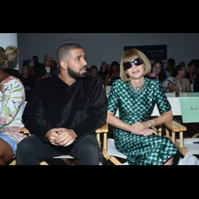 Yesterday, a photo of the 6 God and the editor-in-chief of Vogue magazine sitting side-by-side circulated the web. The two were sitting in the front row together at Serena Williams' New York Fashion week debut. Obviously, Drizzy was there to support possible-girlfriend Serena, just as he's been coming out to support her during her recent tennis matches.