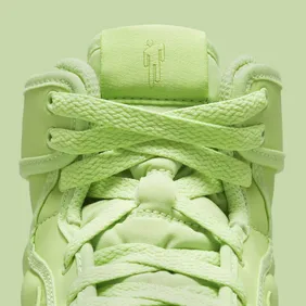 Now, the official images for this collab have officially been shown off thanks to Nike. In the photos below, you can see how this entire colorway has that bright green glow to it that can be found all throughout the silhouette. Eilish's stick figure logo is found on the tongue, and overall, it is one of the boldest sneakers to come out of Jumpman so far this year.