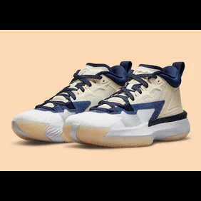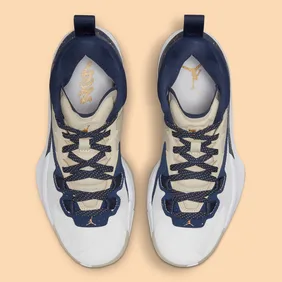 The latest offering to be shown off to the masses is this Pelicans Home colorway that features some pretty nice colors. As you can see from the official images, the shoe is covered in a light beige tone, all while navy blue overlays are placed on top. From there, we get some gold accents, and if you're a Pelicans fan, you're going to enjoy how this is all merged together. Overall, it is yet another great showing from Zion and Jordan Brand.